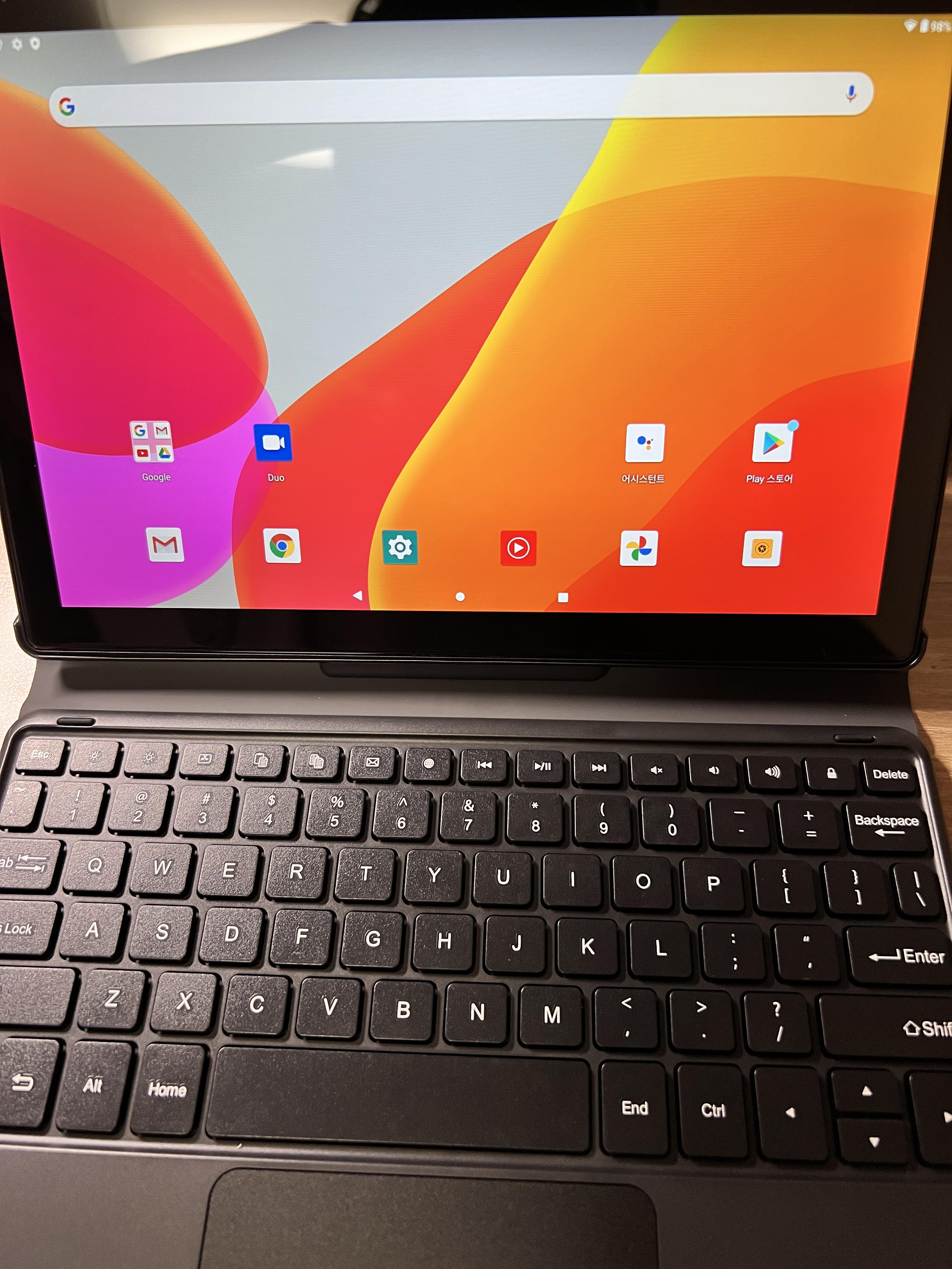 그 결과, 최종 낙점을 받은 제품이 바로 VANKYO P40. 사양은 거의 보급형 스마트폰 수준이긴 하지만 10.1 인치 IPS패널(1920*1200)이라 시원시원한 크기라 유투브 시청이나 기본적인 웹서핑에는 최적화 되었다 보인다. 가격도 준수하여 쿠팡에서 12만9천원에 판매하고 있고 좀 더 발품을 팔면 더 싸게도 구매 가능할 듯 하다. 3만원만 더 추가하면 자판이 달린 전용 케이스도 획득 가능. 중국산이지만 글로벌 롬으로 되어 안드로이드 10 OS를 통해 구글플레이스토어에서 각종 어플을 다운받을 수 있다.